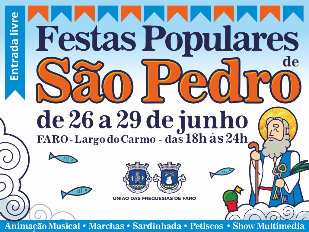 A União das Freguesias de Faro volta a celebrar São Pedro com as suas tradicionais Festas Populares, que este ano decorrem de 26 a 29 de junho, no Largo do Carmo, em Faro. Um local, mais amplo e funcional, recentemente intervencionando e que garante melhores condições para acolher o crescente número de visitantes e participantes, assegurando maior conforto, ordenamento e espaço para todos.