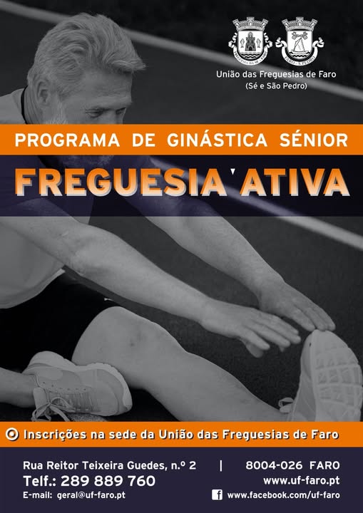 A União das Freguesias de Faro, após o sucesso do ano transato, vai reiniciar em outubro o seu programa de Ginástica Sénior, para maiores de 55 anos, denominado “Freguesia Ativa”, que terá lugar no ginásio do FC de São Luís duas vezes por semana.